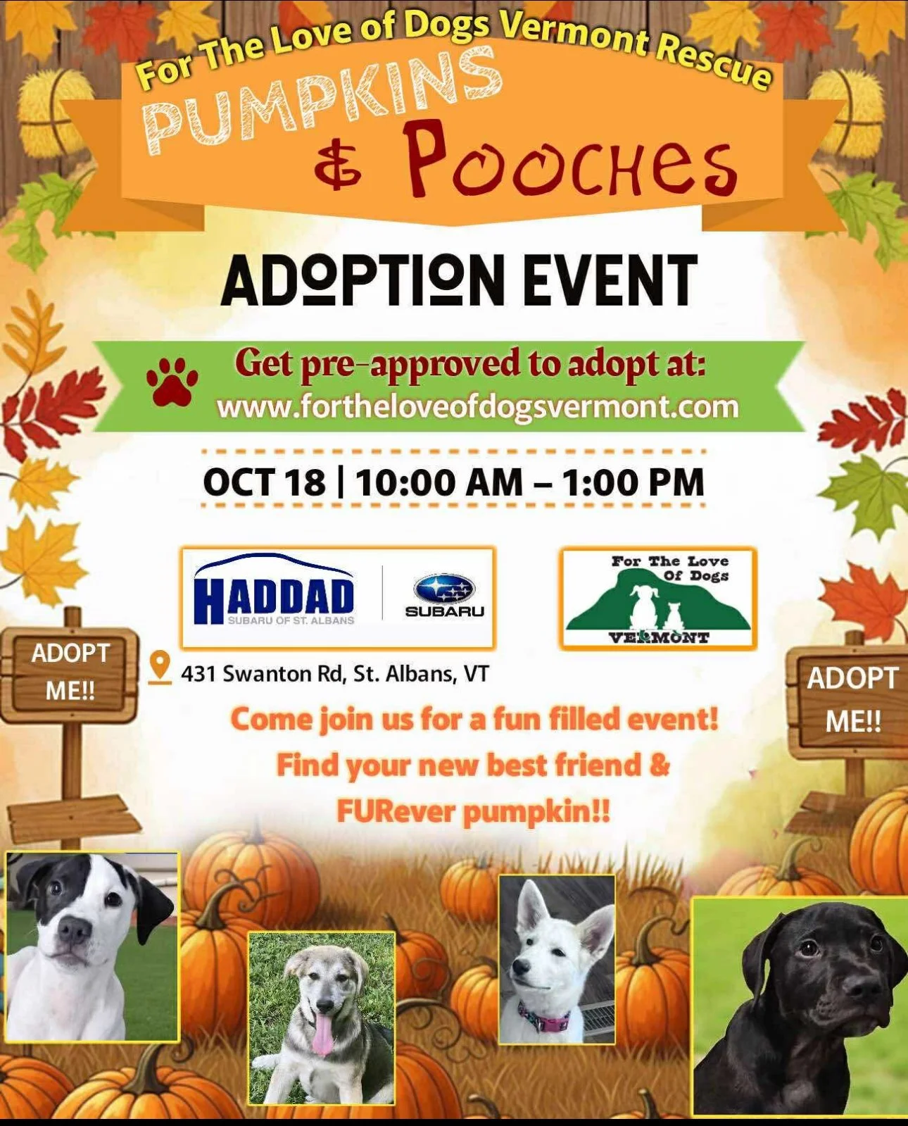 SAVE THE DATE - Ready to meet your new family member? Join us OCT 18, St. Albans, VT